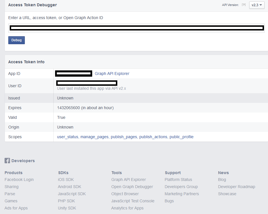 5. If you want to publish a message with picture, you should make sure “publish_actions” is included in “Scopes.”