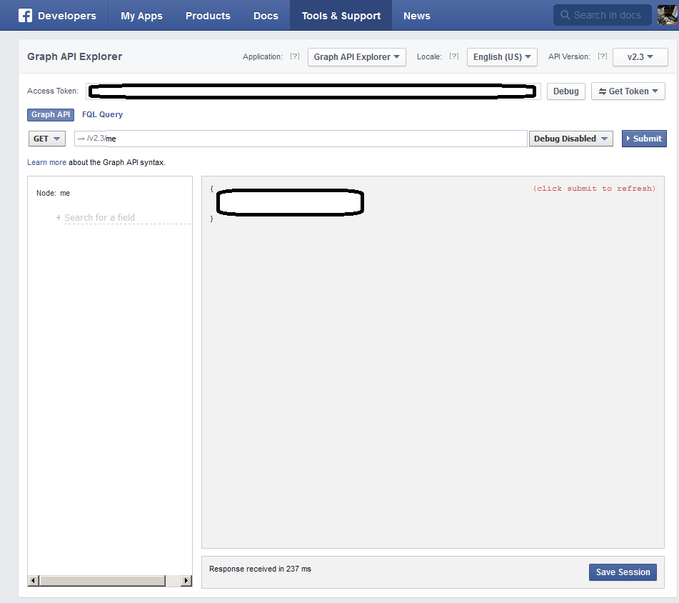 4. Note the access_token and id fields, we’re going to use them in the code below.