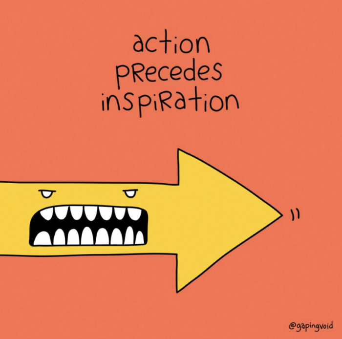 Don’t wait to be moved by the spirit. Move the spirit yourself through action. There is no inspiration without action. Action is inspiration. That’s how it works.