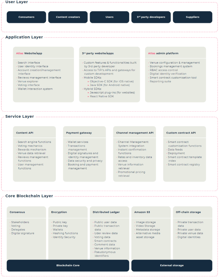 Atlas will provide a smart contract based blockchain infrastructure that connects all consumers and businesses in the travel industry, building a decentralized database network that incentivizes content creation, transactions and consent-based sharing of user data.
